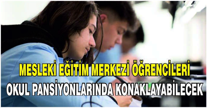 Mesleki eğitim merkezlerine devam eden öğrencilerden, örgün eğitim çağı dışına çıkmamış olmak şartını taşıyanların pansiyonlarda barındırılmaları ve bursluluk sınavına başvurabilecek öğrenciler kapsamına alınmaları sağlandı.