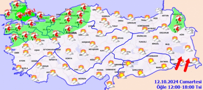 ALPARSLAN DİYARI- Meteoroloji Genel Müdürlüğü tarafından yapılan son tahminlere göre, yurt genelinin parçalı yer yer çok bulutlu, Marmara, Batı ve Orta Karadeniz ile Eskişehir, Çankırı, Giresun, Kars, Ardahan çevreleri ile Kütahya ve Ankara’nın kuzey kesimlerinin sağanak ve gök gürültülü sağanak yağışlı geçeceği tahmin ediliyor.