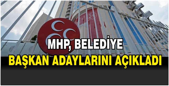 Açıklamayı, yerel yönetimlerden sorumlu Genel Başkan Yardımcısı Sadir Durmaz yaptı. MHP'nin Manisa'da Büyükşehir Belediye Başkan Adayı Cengiz Ergün, Mersin Büyükşehir Belediye Başkan Adayı ise Serdar Soydan oldu.