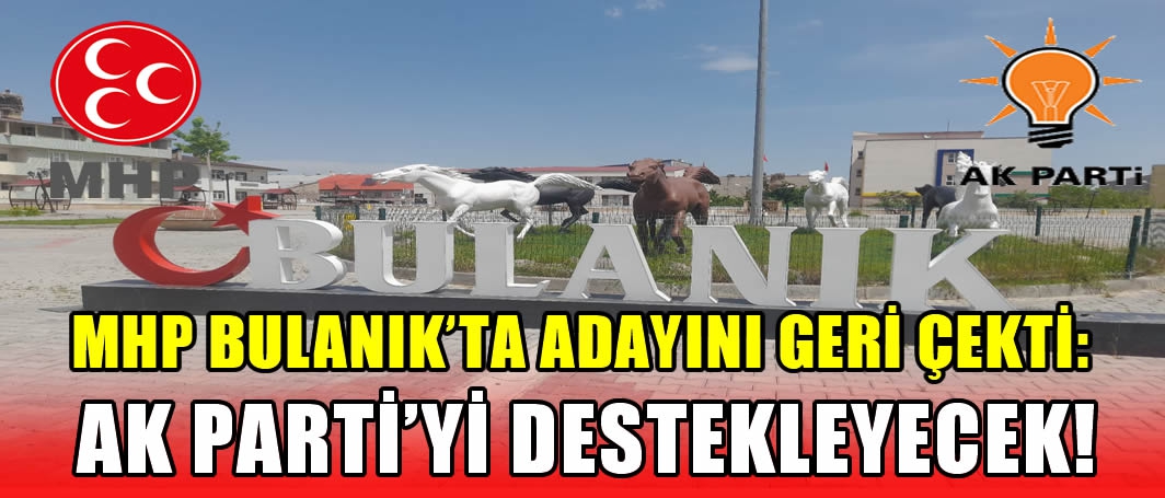 MHP, Muş’un Bulanık ilçesinde belediye başkan adayını geri çektiğini duyurdu. MHP Muş il Başkanı Osman Yüce, seçimde Cumhur İttifakı adayı AK Partili Yakup Kaya’yı destekleyeceklerini açıkladı.