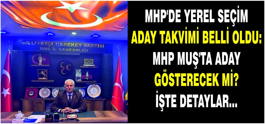 Muş’ta da başvurular başlayacak. MHP'de yerel seçim aday başvuru takvimi belli oldu. Buna göre, belediye başkanlığı için başvurular 13 Kasım Pazartesi günü başlayacak ve 15 Aralık Cuma günü sona erecek.