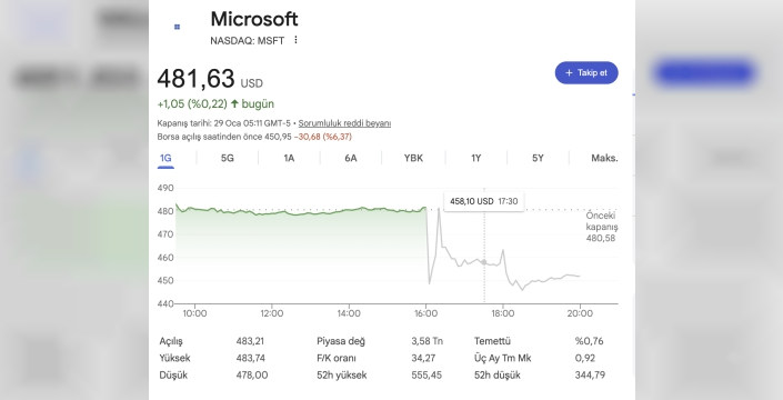 Birkaç ay öncesine kadar bu tür devasa yatırım haberleri Microsoft hisselerini yukarı taşırdı, ancak bu sefer tam tersi bir etki yarattı ve hisseler %7 oranında değer kaybetti. Yapay zeka balonuna dair endişeler artarken, piyasalar artık sadece büyük harcama taahhütleri duymak istemiyor. Yatırımcılar, teknolojinin finansal vaatlerine olan inançlarını tazeleyecek somut gelir getirileri görmeyi her zamankinden daha fazla arzuluyor.