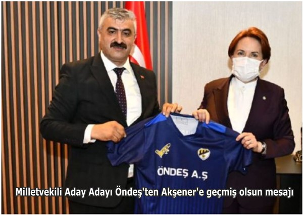 Milletvekili Aday Adayı Öndeş,”Koronavirüs testi pozitif çıkan İYİ Parti Genel Başkanımız Sayın Meral Akşener hanımefendiye ve kıymetli eşi Tuncer beyefendiye şahsım ve Muş İYİ Parti Teşkilat üyeleri ile geçmiş olsun dileklerimi iletiyor, acil şifa diliyorum. Geçmiş olsun Sayın Genel Başkanım, en kısa sürede sağlığınıza yeniden kavuşmanızı temenni ediyorum. “dedi.