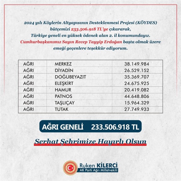 Ağrı'nın Türkiye genelinde en yüksek ödenek alan 2. il olması, bölgedeki altyapı eksikliklerinin giderilmesi ve kırsal kesimin geliştirilmesi adına umut verici bir adım olarak değerlendiriliyor.