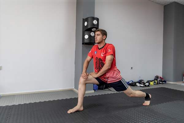 ALPARSLAN DİYARI- Erzurum'un Pasinler ilçesindeki sanayi sitesinde kaynakçılık yapan ve mesaisi sonrası 55 kilometre uzaklıktaki Aziziye ilçesinde akşam kick boks antrenmanına katılan 18 yaşındaki Emirhan Çalışır, milli formayı giyme azmiyle çalışmalarını sürdürüyor.