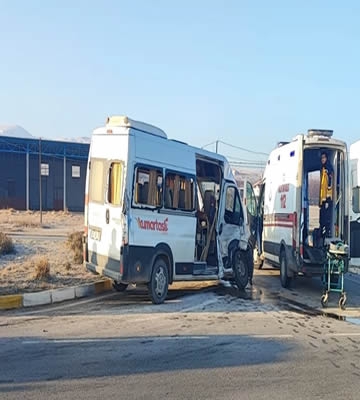 ALPARSLAN DİYARI- Ekrem E. idaresindeki 03 UV 388 plakalı işçileri taşıyan minibüs, Afyonkarahisar-Konya kara yolu Çobanlar Kavşağı'nda Mustafa Ç'nin kullandığı 42 PJ 936 plakalı kamyonetle çarpıştı.