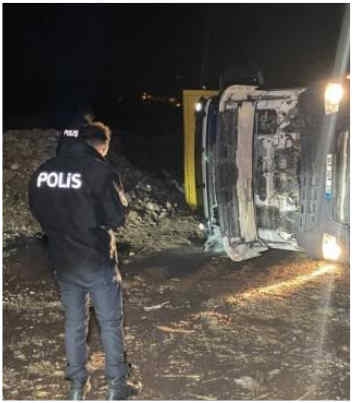 ALPARSLAN DİYARI-Edinilen bilgilere göre, İbrahim Kaya idaresindeki 02 ADS 615 plakalı moloz yüklü kamyon, Karapınar Mahallesi Adıyaman Türkiye Petrolleri Bölge Müdürlüğü yakınlarında boşaltım yaptığı esnada devrildi. Meydana gelen kazada kamyonun sürücüsü yaralandı. Araç içerisinde sıkışan sürücü olay yerine gelen itfaiye ekiplerinin çalışmaları sonucunda bulunduğu yerden çıkarıldı.