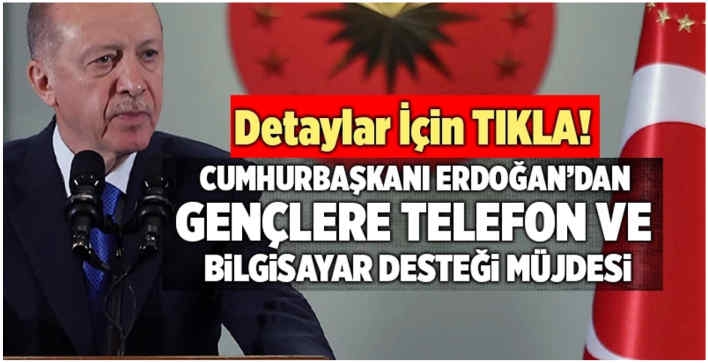 Cumhurbaşkanı Erdoğan, "Örgün eğitimdeki üniversiteli gençlerimize vaadimiz olan cep telefonu ve bilgisayar desteğini hayata geçiriyoruz. Üniversiteli gençlerimize piyasa satış fiyatı 9 bin 500 lirayı geçmeyen cep telefonu ve bilgisayarlar için toplamda 5 bin 500 liraya kadar teknolojik cihaz desteği vereceğiz." dedi.