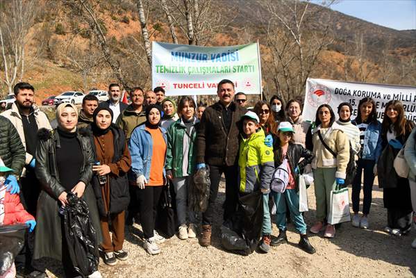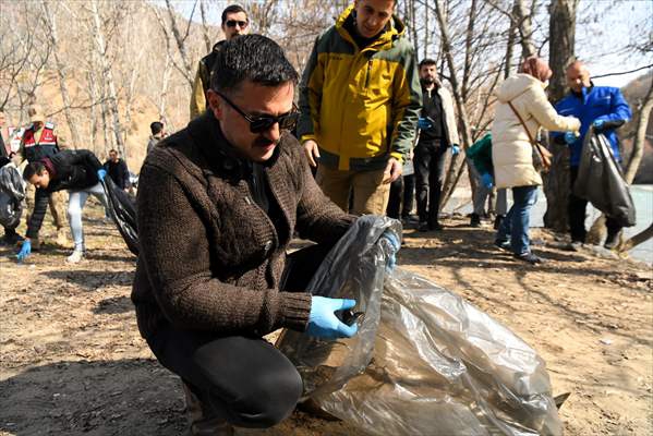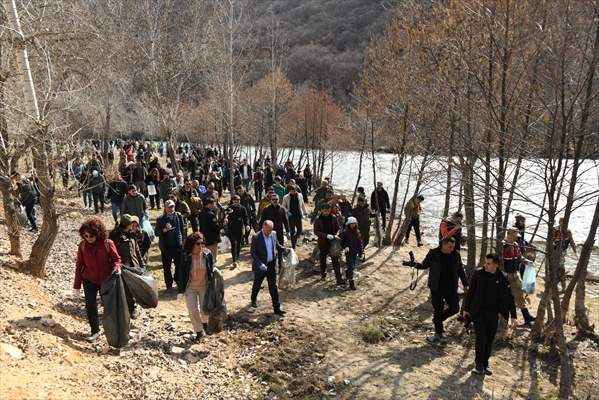 Konuşmaların ardından gruplara ayrılan vatandaşlar, milli parktaki poşet, plastik, kağıt ve cam şişe gibi çöpleri topladı.