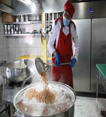 Usta aşçıların ellerinde hijyen kurallarına uyularak hazırlanan sıcak yemeklerin ihtiyaç sahibi ailelerine ulaştırdıklarını bildiren Çetintürk, "Günde bir öğün, üç çeşit yemek hizmeti sunulmaktadır. Mevsimine göre meyve de verilmektedir." dedi.