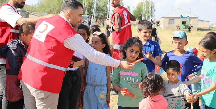 Türk Kızılay Şube Başkanı Selçuk Yay, yaptığı açıklamada, her bayramda olduğu gibi bu bayramda da kırsal mahallelerdeki çocuklarla bir araya geldiklerini söyledi.