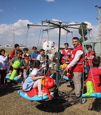 Türk Kızılay Muradiye Şubesi gönüllüleri, ilçe merkezine 25 kilometre uzaklıktaki Yukarı Argıt Mahallesi Dinçbaş mezrasına götürdükleri atlı karıncayla çocuklara eğlenceli anlar yaşattı.