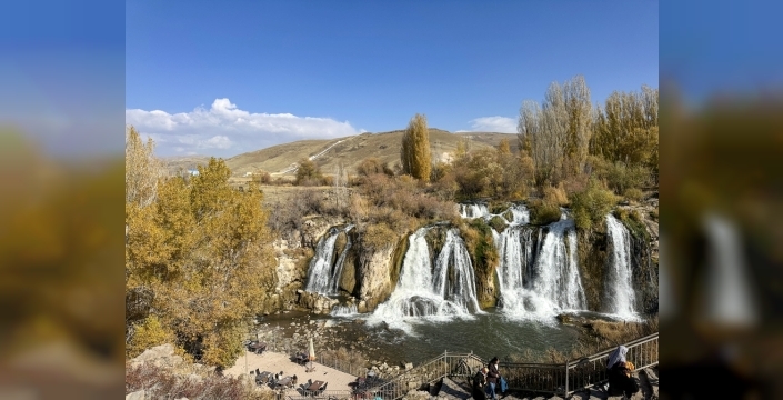 Çevresindeki ağaçların sararması, şelalenin bulunduğu alanda sonbaharın tüm renklerinin bir arada görünmesini sağlıyor. Bu güzellikleri görmek isteyenler, güzel manzarayı cep telefonlarıyla kaydediyor.