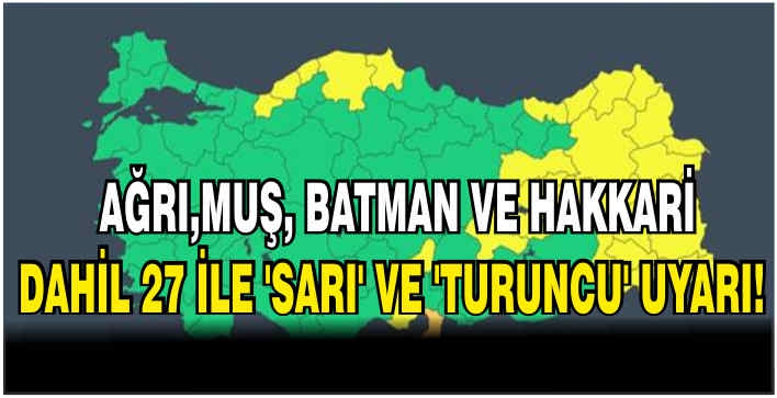 Hatay ise turuncu kodla uyarıldı.