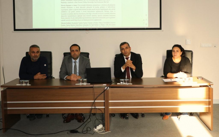Rektör Yardımcısı Prof. Dr. Kenan Yıldırım, "Bu sürecin sadece kalite koordinatörlüğüne ait olmadığını, üniversitenin her biriminin katkısıyla iş ve işlemlerin belirlenmesi ve süreç yönetimi el kitabının oluşturulmasının önemli olduğunu" vurguladı.