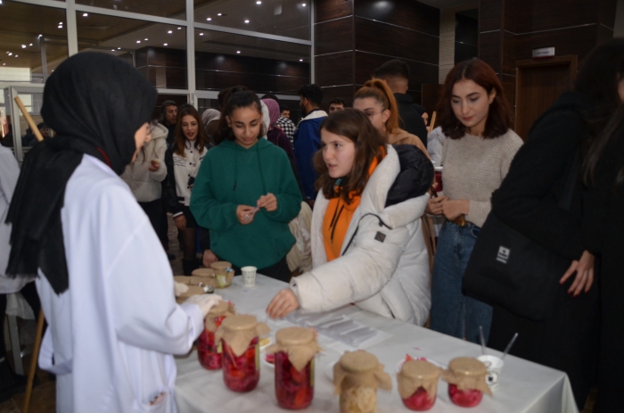 ALPARSLAN DİYARI- Muş Alparslan Üniversitesi Teknik Bilimler Meslek Yüksekokulu tarafından 1071 Malazgirt Kongre ve Kültür Merkezi Fuaye Alanı’nda 1. Gıda Bilimi etkinliği düzenlendi. Yapılan etkinlikte gazetecilere açıklamalarda bulunan Muş Alparslan Üniversitesi Rektörü Prof. Dr. Mustafa Alican, üniversite olarak Muş’un ve üniversitenin potansiyelini ortaya çıkarmaya çalıştıklarını söyledi. Bu potansiyel sonucu ortaya koyacakları ürünleri tanıtmaya yönelik çalışmalarının devam ettiğini ifade eden Prof. Dr. Mustafa Alican, “Bu çerçevede Teknik Bilimler Meslek Yüksekokulumuz bünyesinde birinci gıda etkinlikleri şenliğimiz şu anda yapıyoruz. Öğrencilerimiz birçok gıda hazırladılar. Bu ürünlerin bir kısmı piyasada bulunmayan ve kendi ürettikleri ürünlerdir. İnşallah bu etkinlikte üretilmiş olan ürünleri ileriki zamanlarda daha da spesifik hale getirip kamuoyuna sunabileceğimiz, piyasaya sürebileceğimiz ürünlere dönüştürmek gibi bir hedefimiz var. Önümüzdeki dönemlerde bu gıda etkinliğimizi devam ettirmek istiyoruz” diye konuştu.