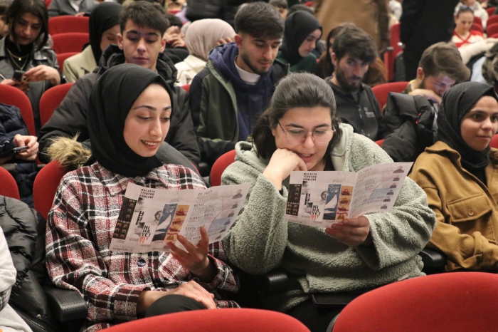 ALPARSLAN DİYARI- Emmanuelle Marie'nin yazdığı, Malatya Turgut Özal Üniversitesi Öğr. Gör. Mehmet Önder'in yönetmenliğini üstlendiği ve Malatya Turgut Özal Üniversitesi Sahne Sanatları Bölümü öğrencilerinden Seda Nur Taç, Fatma Şahin ve Çağla Aysan tarafından sahnelenen "Beyaz" adlı oyuna, Muş Alparslan Üniversitesi Rektörü Prof. Dr. Mustafa Alican, Rektör Yardımcısı Prof. Dr. Yaşar Karadağ, Rektör Danışmanları Doç. Dr. Mehmet Özalper, Doç. Dr. Atike Yılmaz, Dr. Öğr. Üyesi Mustafa Yaşar, Genel Sekreter Harun Demir, Bulanık Meslek Yüksekokulu Müdürü Doç. Dr. İrşad Sami Yuca, KÜSAM Müdürü Dr. Öğr. Üyesi Ender Can Dönmez, akademisyenler, idari personeller, öğrenci ve sanat sever katıldı.