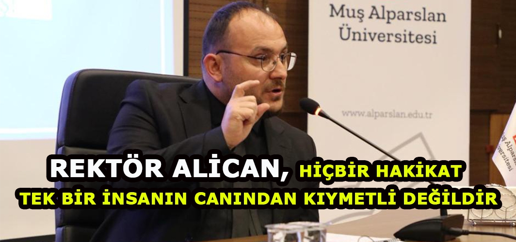 MAUN Rektörü Prof. Dr. Mustafa Alican, ilk olarak, kitap günlerinin kente sağlamış olduğu kültür atmosferine değindikten sonra bu atmosferde emeği geçen Muş Belediyesi'ne ve Belediye Başkanı Feyat Asya'ya teşekkür etti. Tarih dilini oluşturmak için tarih biliminin tanımlamasını yaparak sözlerine başlayan Rektör Mustafa Alican, tarihsel hakikatin ontolojik yorumuna ve bu yorumun mekanlara, kültürlere ve dinlere göre değişiklik arz etmesine değindi. Bu bağlamda, İsrail Cumhurbaşkanı Netenyahu'nun Yahudi teolojisindeki Yeşeya'yı yorumlamasının bölgede ne gibi insanlık dramlarına kapı araladığını açıklayan Rektör Alican, İsrail'in aylardır Filistin'de yürütmekte olduğu katliamın altında yatan motivasyon unsurunu Netenyahu'nun tarihsel momente bakışıyla izah ettikten sonra tarihi kasten hatalı okumanın bugün olduğu gibi geçmişte de büyük insanlık dramlarına sebebiyet verdiğinin altını çizdi.