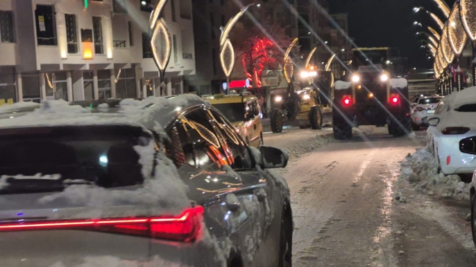 Şehrin dört bir yanını beyaza bürüyen kar örtüsüne karşı belediye ekipleri, gece gündüz demeden sahada görev yapıyor.