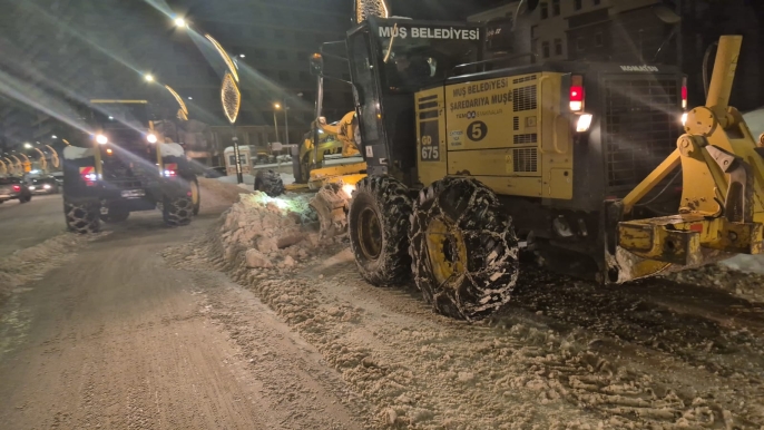 Muş Belediyesi Karla Mücadele Ekipleri; başta ana arterler olmak üzere ara cadde ve sokaklarda yoğun bir mesai harcıyor.
