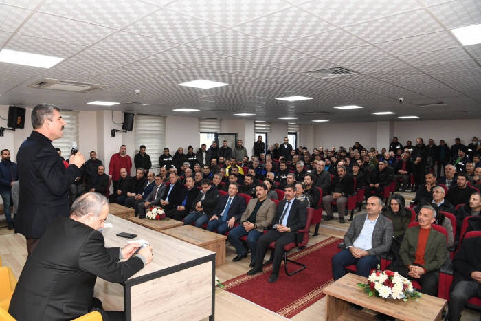 Bursa Muş Kardeşliği Gençlik ve Eğitim Merkezinde gerçekleştirilen toplu sözleşmede Belediye Başkanı Feyat Asya, Hak İş Sendikası Muş Şube Başkanı Yaşar Kalır, başkan yardımcıları, birim amirleri ve işçiler hazır bulundu. Başkan Asya konuşmasında, “10 yıllık hizmet geçmişimize baktığımız zaman hamdolsun başarılı bir tablo çizdiğimizi görüyoruz. Bu başarı bizi tekrar 3’üncü döneme taşıdı. Bu başarıyı şahsi olduğunu söylemek gibi bir lüksümüz yok. Eğer temizlik işlerinde görevli bir arkadaşımız işini hakkı ile yapmasaydı, bu bizim için çok büyük bir eksiklik olacaktı. Eğer kanalizasyondaki arkadaşlarımız işlerini hakkı ile yapmayarak vatandaşlarımız mağdur olsaydı biz binlerce defa ‘çok iyi bir başkanız’ deseydik bu başarı sayılmazdı. Bütün birimlerde çalışan personel arkadaşlarımızla kolektif ruh oluşturduk. İnşallah bu ruh bizi önümüzdeki yıllara sizlerle birlikte bir aile aidiyeti oluşturacağımız yapı ile daha yaşanılabilir bir şehri sizlerle birlikte sağlayacağız. Ben bu anlamda 18 Ocak’ta tekrar beni Muş halkına emanet eden Sayın Cumhurbaşkanımıza ve ekibine teşekkür ediyorum. Bahusus, süreçte yapılan anketlerde beni açık ara fark ile tercih eden sizlere ve Muş halkına şükran ve minnetlerimi arz ederim” dedi.