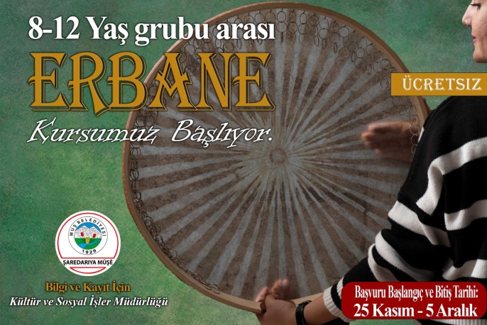 ALPARSLAN DİYARI- Geleneksel müzik kültürünün önemli enstrümanlarından biri olan erbanenin gelecek nesillere aktarılmasını hedefleyen kurs için başvurular 25 Kasım – 5 Aralık tarihleri arasında alınacak.