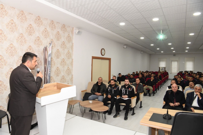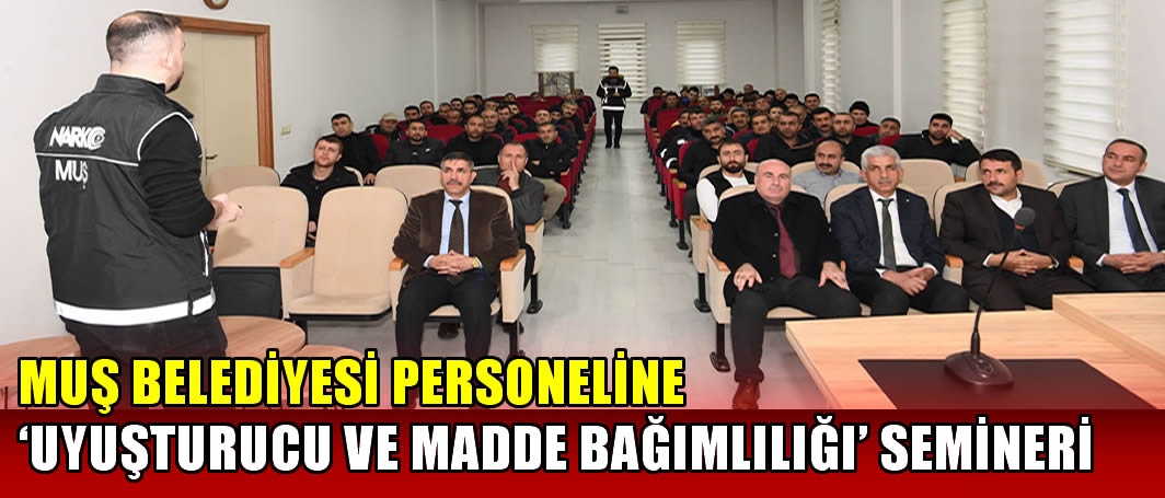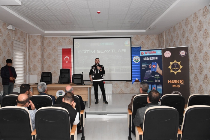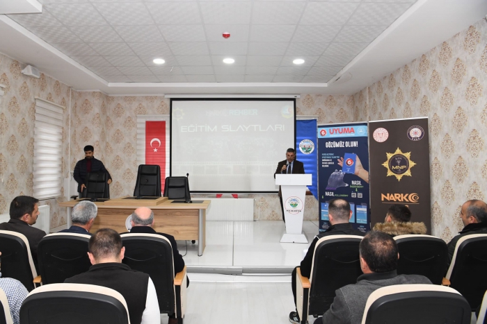 ALPARSLAN DİYARI- Muş Belediyesi tarafından organize edilen seminer, Narkotik Suçlarla Mücadele Şube Müdürlüğü personelleri tarafından verildi. Muş Belediye Porsor Ana Kadın Kültür ve Eğitim Merkezi salonunda düzenlenen 'hizmet içi eğitim' programında, Narkotik Suçlarla Mücadele Şube Müdürlüğü tarafından belediye personeline madde bağımlılığıyla mücadele eğitimi verdi. Eğitimde; madde kullanan bir kişinin nasıl anlaşılacağı, fiziksel belirtileri ve çözüm yolları anlatıldı.