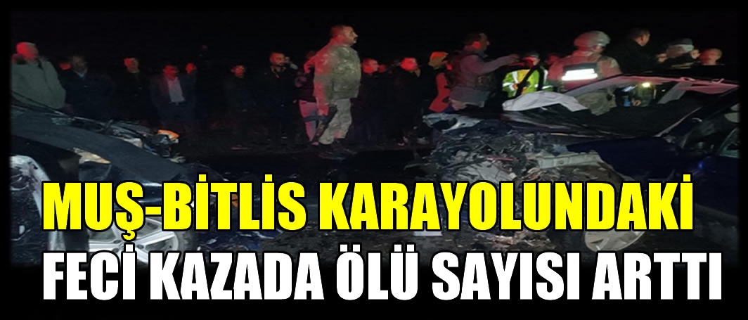 ALPARSLAN DİYARI-Muş-Bitlis karayolunda dün akşam saatlerinde iki aracın çarpışması sonucu meydana gelen kazada ölü sayısı 3'e yükseldi.