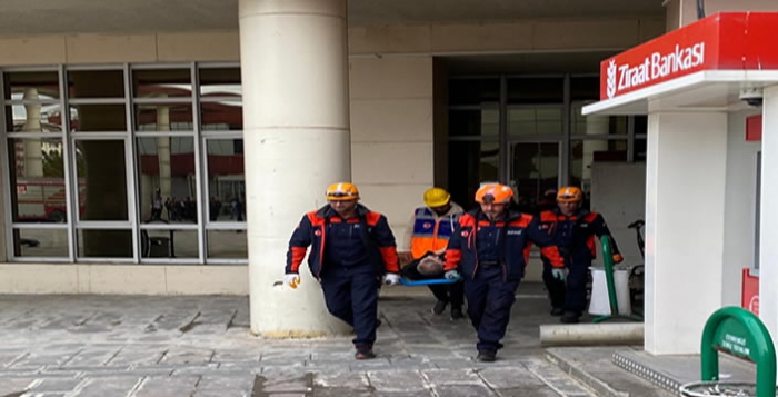 Muş Devlet Hastanesi’nden yapılan açıklamada, “Olası bir deprem durumunda, karşılaşılabilecek riskleri ortaya çıkarmak, olay karşısında alternatif çözümler bulmak ve oluşabilecek aksaklıkları engellemek amacıyla Hastane Personelimiz, İtfaiye, AFAD ve UMKE ekipleri ile ortaklaşa tatbikat yapıldı. Muş ilinde meydana gelen deprem ve akabinde hastanemizde meydana gelen yangın sonrası ilgili birimlerin ve paydaş kurumların olay anında nasıl davranmaları gerektiği, olay esnasında kimin, nasıl bir yol ve sorumluluk üstleneceğinin değerlendirilmesi adına hazırlanan senaryo başarı ile gerçekleştirildi. Tatbikatımıza katkılarından dolayı, Muş Belediyesi İtfaiye ekiplerine, İl Afet ve Acil Durum Müdürlüğü ve UMKE ekiplerine teşekkür ederiz” denildi.