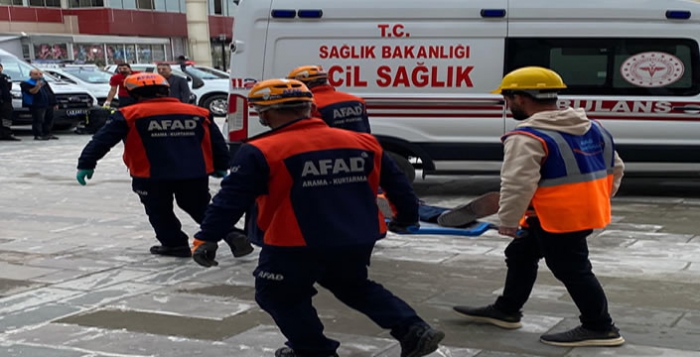ALPARSLAN DİYARI- Hastane Afet ve Acil Durum çerçevesinde, Muş devlet Hastanesi’nde deprem ve yangın tatbikatı (masabaşı ve saha) gerçekleştirildi. Tatbikatta oluşturulan senaryo çerçevesinde hastane personeli, itfaiye, AFAD ve UMKE ekipleri gelişen olaylara müdahale etti.