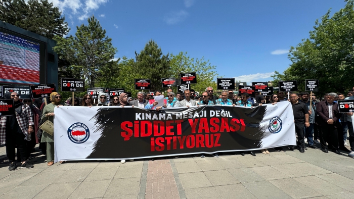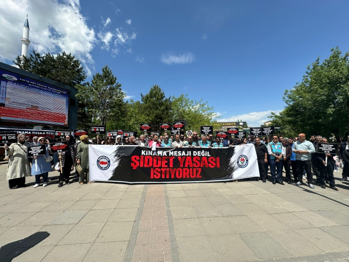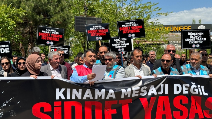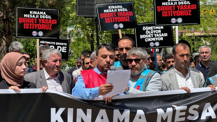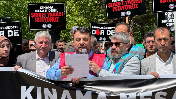 Dün Ankara’da TBMM önünde yaptığımız çağrıyı bugün burada bizler de yapıyoruz: Ölümle sonuçlanmaya başlayan saldırıların son bulması için gereken adımlar ivedilikle atılmalı; eğitimcilere yönelik şiddeti önleme yasası artık çıkarılmalıdır. Öğretmen, memur, hizmetli, şef, şube müdürü demeden tüm eğitim çalışanlarına, kamu görevlilerine yönelen şiddeti bir defa daha lanetliyoruz. Bugüne kadar kamu görevlilerine yönelik gerçekleştirilen tüm şiddet olaylarında tepkimizi en sert şekilde ortaya koyduk.