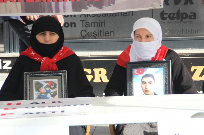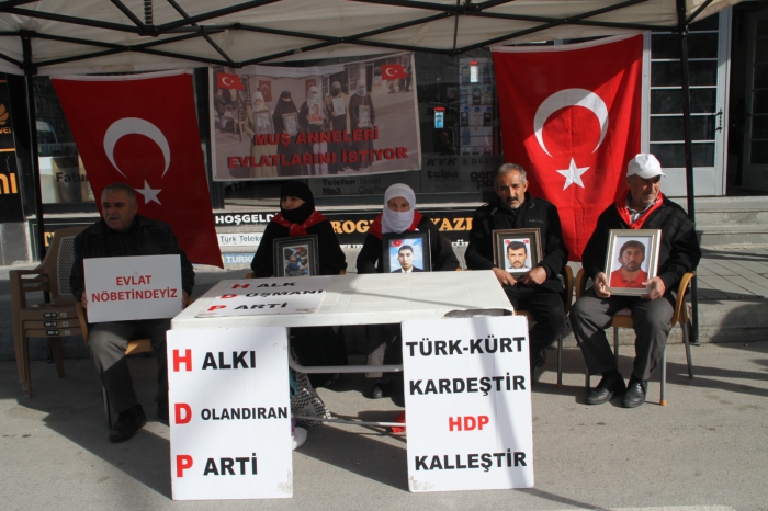 ALPARSLAN DİYARI- HDP İl Başkanlığı önünde toplanan aileler, "Halk düşmanı parti", "Evlatlarımızı vereceksiniz", "Ha HDP ha PKK", "Türk-Kürt kardeştir, HDP kalleştir", "Halkı dolandıran parti", "Anneler direniyor", "Artık yeter yakamızdan düşün" ve "Yeter artık evlatlarımızı bırakın" yazılı pankartlar açtı.