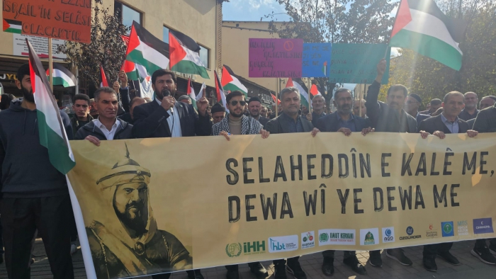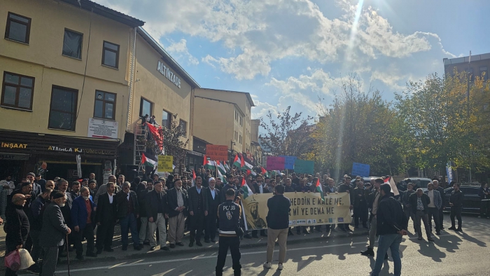 Cuma namazı sonrasında Hacı Şeref Camii’nde toplanan HÜDA PAR üyelerine vatandaşlar da destek verdi. Kalabalık, Belediye Caddesi boyunca yürüyüş yaptı. İsrail aleyhine slogan atan ve sık sık tekbir getiren kalabalık adına açıklama yapan HÜDA PAR İl Başkanı Mehmet Şirin Çağlayan, konuşmasının başında Filistinli anne ve çocuklarından özür diledi.
