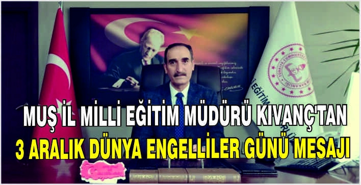 ALPARSLAN DİYARI- Muş İl Milli Eğitim Müdürü Enver Kıvanç, 3 Aralık Dünya Engelliler Günü dolayısıyla mesaj yayımladı. Başkan Korkmaz mesajında, asıl engelliliğin özel durumu olan insanlara karşı sergilenen duyarsızlık hali ve düşüncedeki engeller olduğunu belirtti.
