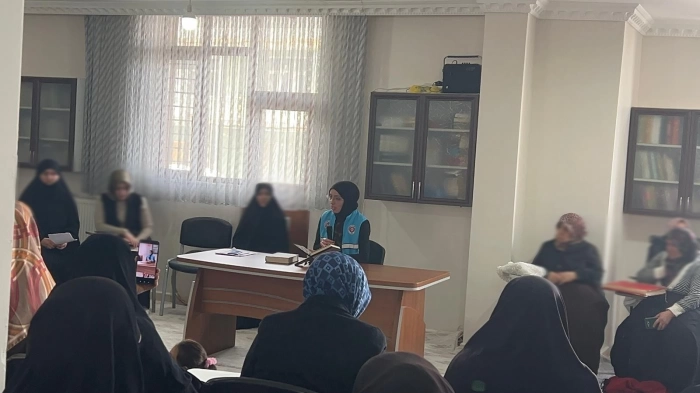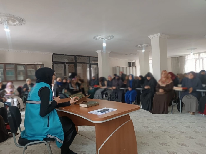 ALPARSLAN DİYARI–Düzenlenen programda İl Vaizi Hümeyra Kaya, "Kadının Ailede Değerleri, Yaşatma Gücü: Sabır, Şükür ve Merhamet" konulu bir konferans verdi. Kaya, kadınların aile yapısındaki önemli rolüne vurgu yaparak, toplumsal değerlerin yaşatılmasında sabır, şükür ve merhametin taşıdığı önemi anlattı.