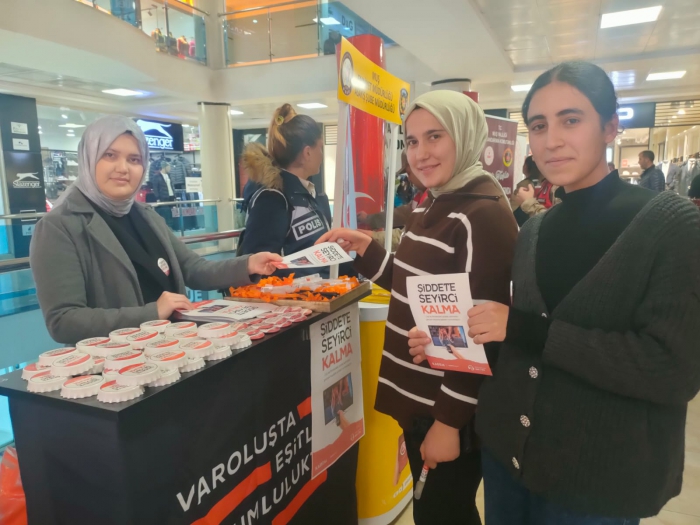 ALPARSLAN DİYARI- Kampanya kapsamında, bilgi evlerinde, kütüphanelerde ve alışveriş merkezlerinde farkındalık çalışmaları gerçekleştirildi. Vatandaşlara kadına yönelik şiddetle mücadeleye dair bilgilendirmeler yapılarak toplumun bu konuda daha duyarlı olması hedeflendi.