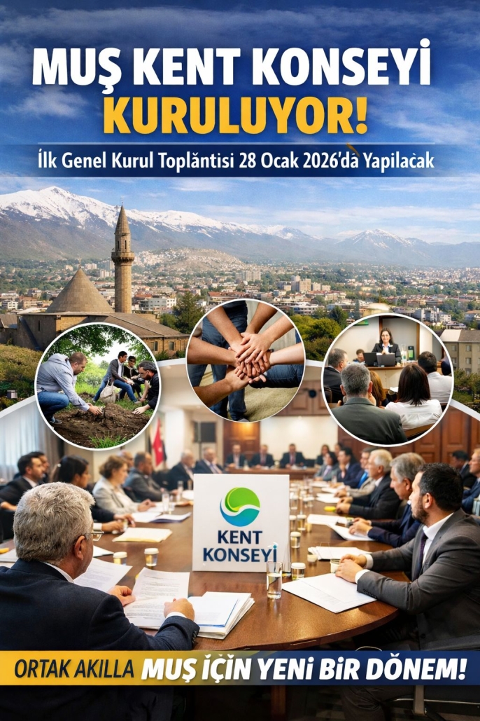 Kent Konseyinin ilk Genel Kurul Toplantısı, 28 Ocak 2026 Çarşamba günü saat 14.00’te, Bursa–Muş Kardeşliği Eğitim Merkezi’nde gerçekleştirilecek. Toplantıda yürütme kurulunun oluşturulması ve kent konseyinin çalışma usul ve esaslarının belirlenmesi bekleniyor.