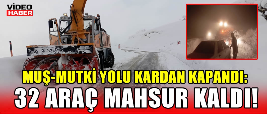 ALPARSLAN DİYARI- Muş'un Hasköy ile Bitlis'in Mutki ilçeleri arasındaki kara yolu Kaymakam Çeşmesi mevkisinde, etkili olan kar ve tipi nedeniyle 32 araçtaki yaklaşık 90 kişi mahsur kaldı.