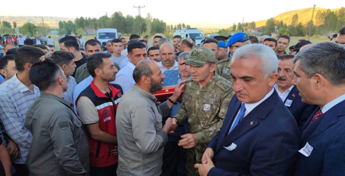 Şehidin babası Ahmet Selçuk'a Türk bayrağı veren Muş Valisi Avni Çakır, "Bundan sonra şehidimiz sadece senin evladın değil, 85 milyonun evladı. Çok zor. Allah sana sabrını verecek. Bir şehit babası olarak beratı ve bayrağı taşıyacaksın. Bundan sonra hepimiz senin ve ailenin emrindeyiz. Çocukların çocuğumuz, kardeşimiz. Allah şehidimizin mekanını cennet etsin." dedi.