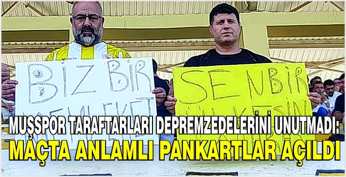 Taraftarların bu dayanışma dolu pankartları, hem Muşspor hem de Kahramanmaraşspor taraftarlarından alkış aldı. Karşılaşma boyunca sık sık depremzedelere yönelik destek tezahüratları yapılırken, bu anlamlı pankartlar, yaşanan felaketi unutturmamak ve birlik içinde olmanın önemini bir kez daha hatırlattı.