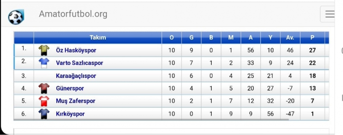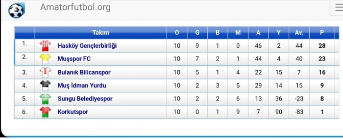 B Grubunda Öz Hasköyspor 27 puanla zirvenin sahibi olurken, Varto Sazlıcaspor 22 puanla ikinci sıraya yerleşerek Play-Oflara kaldı.