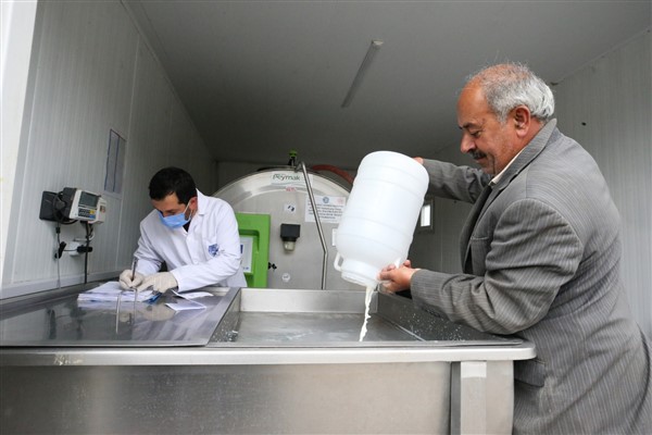 Tek geçim kaynakları hayvancılık olan köylüler de her gün sağdıkları sütü, toplama merkezine getirerek görevlilere teslim etmeye başladı.