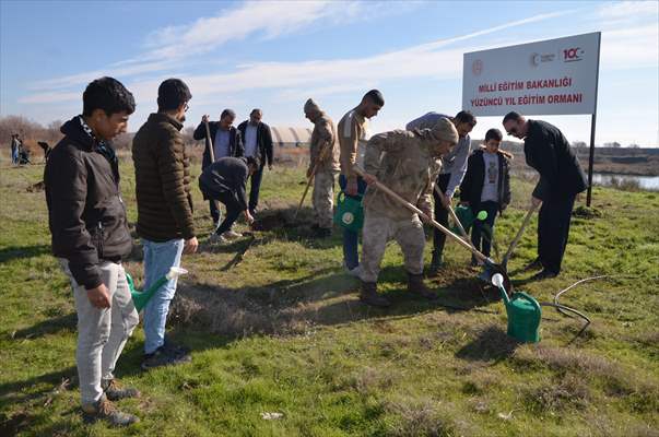 Öğretmenler, öğrenciler ve velilerin katıldığı fidan dikim töreninde konuşan Milli Eğitim Müdürü Enver Kıvanç, 24 Kasım Öğretmenler Günü etkinlikleri çerçevesinde 100. Yıl Eğitim Ormanı alanında fidanları toprakla buluşturduklarını söyledi.