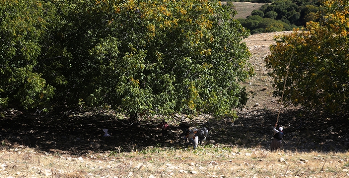 Ailesiyle ceviz toplayan Sevgi Akçan, "Ceviz toplama çok meşakkatli. Dik yamaçlardan yürümek çok zor. Geçen yıllarda ağaçtan düşüp ölenler de oldu. Burası köyün ortak ceviz bahçesi. Herkes istediği gibi toplayabiliyor." ifadelerini kullandı.