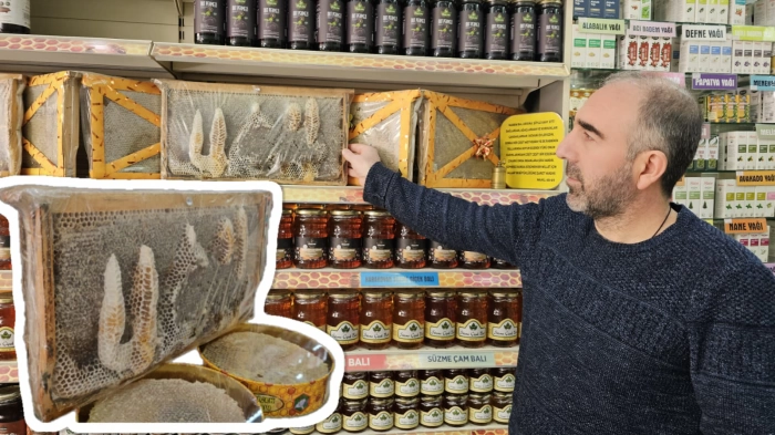"12 yıldır bu peteği satmaya kıyamadım, elimden geldiğince korumaya devam edeceğim" diyen Oflaz, dükkânına gelen birçok müşterinin de peteği görünce hayranlıkla incelediğini ifade etti.