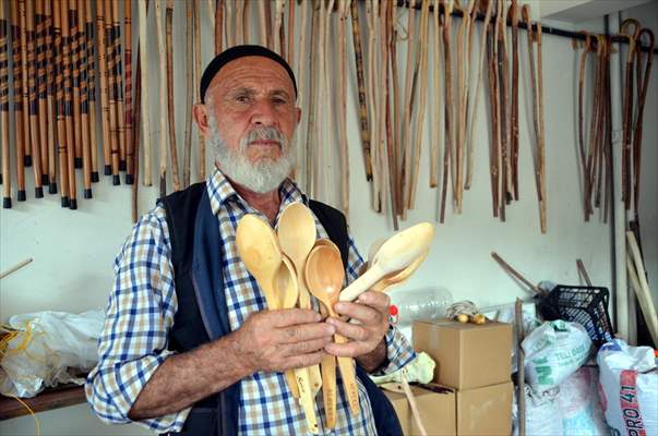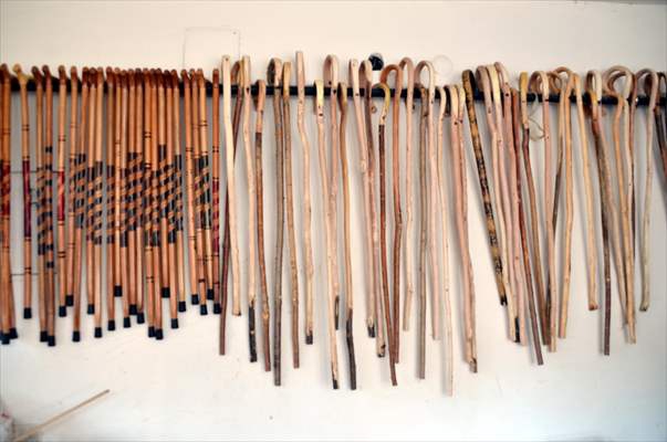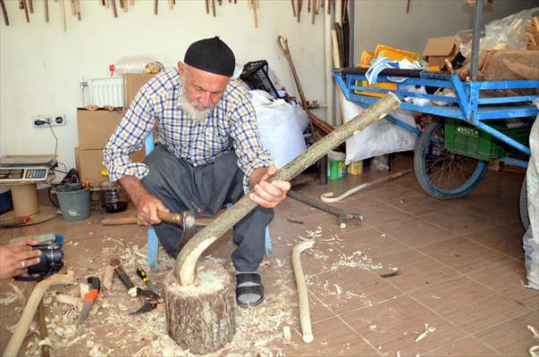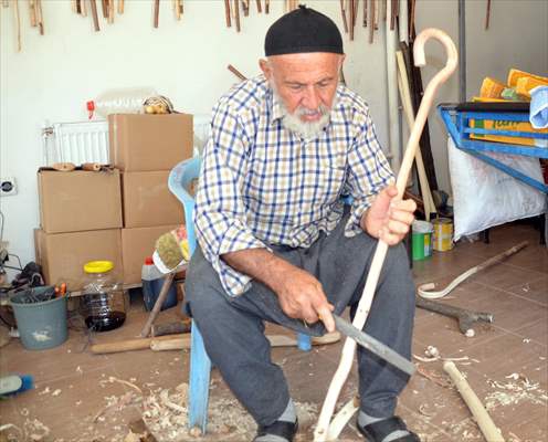 ALPARSLAN DİYARI- Batman'ın Sason ilçesinden göç ederek 35 yıl önce Muş merkeze bağlı Sunay Mahallesi'ne yerleşen Bahri Bağlım, uzun süre mobilya atölyesinde çalıştıktan sonra yaşadığı mahallede iş yeri açtı. Yaklaşık 15 yıldır ormanlık alanlarda kuruyan ağaç dallarını toplayarak iş yerine getiren Bağlım, tasarladığı baston, kaşık, tarak ve süs eşyalarını satarak kazanç sağlıyor.