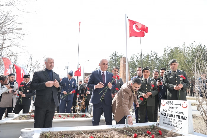 Protokol üyeleri ve vatandaşlar, şehit mezarlarına karanfil bırakarak minnet ve vefa duygularını dile getirdi.