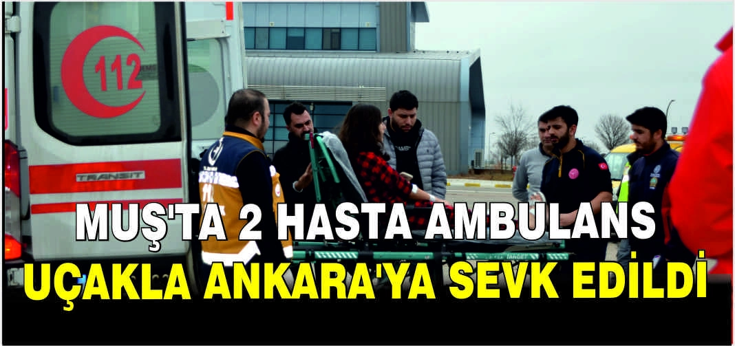 Muş Devlet Hastanesi'nden alınan bebek ile ambulansla Siirt'ten getirilen Ekinci, sağlık ekiplerinin koordinasyonunda ambulans uçağa alındı.