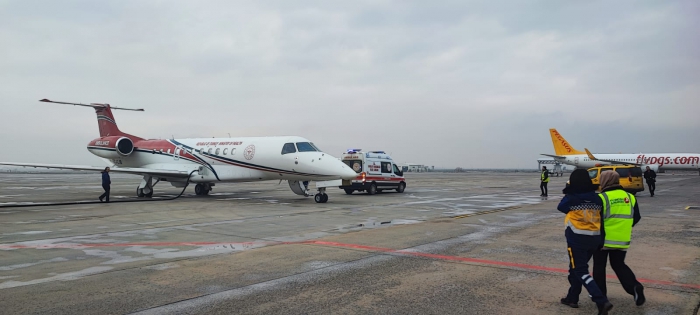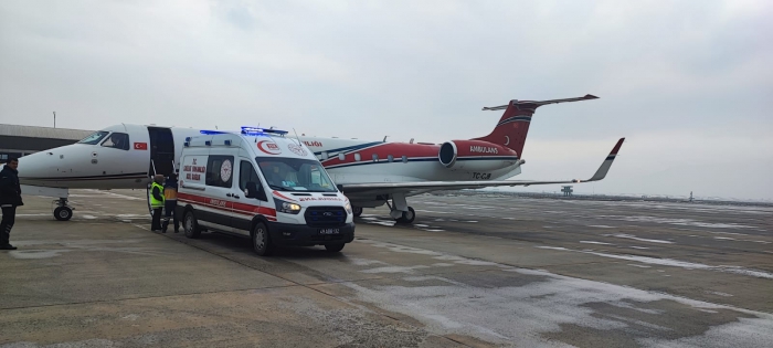 Muş Sultan Alparslan Havalimanı'nda gelen ambulans uçakla Ankara Hacettepe İhsan Doğramacı Çocuk Hastanesi'ne sevki sağlandı.