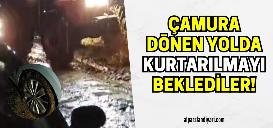 Sabah erken saatlerinde köylerine ev yapmak için giden vatandaşlar, etkili olan yağmur yağışı nedeniyle çamura dönüşen yolda araçları ile mahsur kaldı.